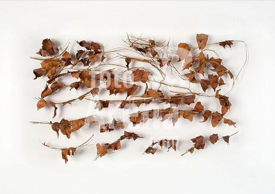 alb3635468 Floral Garlands of Nany. Dimensions: Present approximate dimensions: L. 60 × W. 25 cm (23 5/8 × 9 13/16 in.). Dynasty: Dynasty 21. Reign: reign of Psusennes I. Date: ca. 1050 B.C..Nany bore the titles Mistress of the House, Chantress of Amun-Re, and King's Daughter of his body. She was most likely the child of the High Priest of Amun, Painedjem I (ca. 1050 B.C.), who was de facto ruler of the Theban area in the early 21st Dynasty. Like many of the members of her family, she was buried at Deir el-Bahri, in an earlier tomb used by a consort of the New Kingdom pharaoh Amenhotep II (died ca. 1400 B.C.), Meritamun. In her seventies at the time of her death, she was short and fat, but retained some of her teeth and most of her hair. Most of her tomb furniture had originally been made for her mother, a Mistress of the House and Chantress of Amen-Re named Tentabekhenet.This floral collar, made of persea leaves and lotus petals sewn with a double running stich over thin strips of palm leaf, was found over the left breast of her wrapped mummy. Museum: Metropolitan Museum of Art, New York, USA.