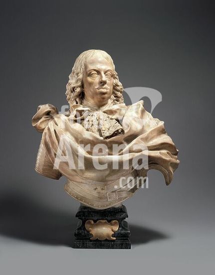 alb3636737 Cosimo III de' Medici (1642-1723), Grand Duke of Tuscany. Artist: Giovanni Battista Foggini (Italian, Florence 1652-1725 Florence). Culture: Italian, Florence. Dimensions: Overall (confirmed): 39 1/8 × 31 × 16 7/8 in., 391 lb. (99.4 × 78.7 × 42.9 cm, 177.4 kg). Date: ca. 1680-82.These meltingly carved busts of father and son (see also 1993.332.2) are surely the finest examples of the portrait style of G. B. Foggini, the leading sculptor of the Florentine Baroque. While strong echoes of Bernini date the creation of the pair to shortly after the younger artist's return from Rome, they already exhibit Foggini's talent for the depiction of material opulence that earned him the post of Medici court sculptor. Dynamic contrasts abound: the fragile lace cravats and lavish mantles (emulating modes of the contemporary French court) set off the realistically depicted faces. They in turn provide their own study in contrasts: the commanding pose and classic Habsburg physiognomy of the balding father serve as counterpoint to the sweet, somewhat unformed face of the youth, overwhelmed by a delirious cascade of curls. Foggini's artistic genius inaugurated the final flourish of Medici patronage. These busts, modeled from life, were followed by a series portraying other family members, all intended to promote the political aspirations of the fading dynasty. Their acquisition served to link our major series of Roman Baroque portrait busts to a growing collection of stunning small-scale Florentine sculptures of that period. Museum: Metropolitan Museum of Art, New York, USA.