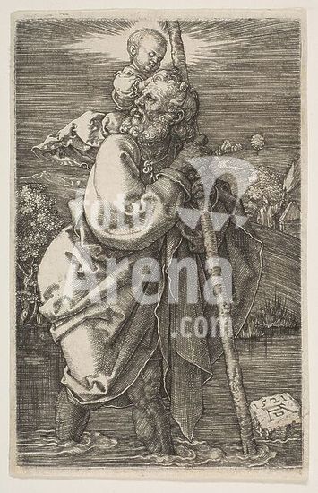 alb3672419 Saint Christopher. Artist: Albrecht Dürer (German, Nuremberg 1471-1528 Nuremberg). Dimensions: sheet: 8 3/8 x 8 3/8 in. (21.3 x 21.2 cm). Date: 1511. Museum: Metropolitan Museum of Art, New York, USA.
