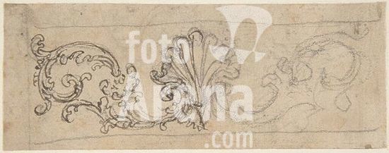 alb3607350 Design for the Top of an Arch, Decorated with a Cherub (recto); Design for the Frame of a Frieze (verso). Artist: Giovanni Battista Foggini (Italian, Florence 1652-1725 Florence). Dimensions: sheet: 2 1/2 x 3 11/16 in. (6.4 x 9.3 cm). Date: 1652-1725. Museum: Metropolitan Museum of Art, New York, USA.