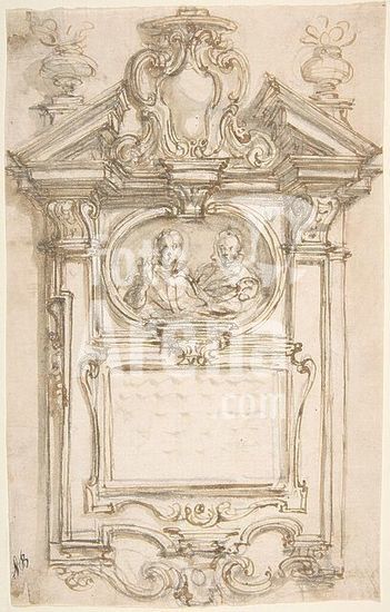 alb3650208 Design for an Epitaph. Artist: Giovanni Battista Foggini (Italian, Florence 1652-1725 Florence). Dimensions: sheet: 9 3/8 x 5 15/16 in. (23.8 x 15.1 cm). Date: 1652-1725. Museum: Metropolitan Museum of Art, New York, USA.