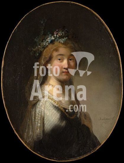alb3661053 A Young Woman as a Shepherdess ("Saskia as Flora"). Artist: Govert Flinck (Dutch, Cleve 1615-1660 Amsterdam). Dimensions: Oval, 26 1/4 x 19 7/8 in. (66.7 x 50.5 cm). Museum: Metropolitan Museum of Art, New York, USA. Author: Govert Flinck.