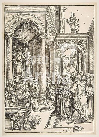 alb3679365 The Presentation of the Virgin in the Temple, from The Life of the Virgin. Artist: Albrecht Dürer (German, Nuremberg 1471-1528 Nuremberg). Dimensions: sheet: 12 1/8 x 8 3/8 in. (30.8 x 21.3 cm)image: 11 5/8 x 8 5/16 in. (29.5 x 21.1 cm). Date: ca. 1503. Museum: Metropolitan Museum of Art, New York, USA.
