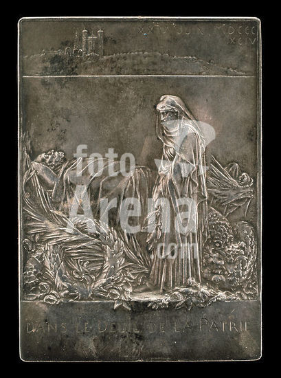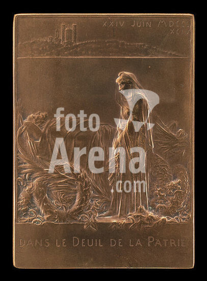 alb3696614 France Mourning the President of the Republic [reverse]. Dated: 1894. Dimensions: overall (rectangular): 8.08 x 5.76 cm (3 3/16 x 2 1/4 in.) gross weight: 132.35 gr (0.292 lb.). Medium: bronze. Museum: National Gallery of Art, Washington DC. Author: Louis-Oscar Roty.