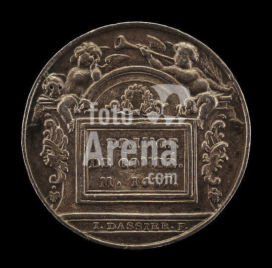 alb3696936 Memorial Tablet, with Geniuses of Death and Fame [reverse]. Dated: first half 18th century. Dimensions: overall (diameter): 2.87 cm (1 1/8 in.) gross weight: 18.25 gr (0.04 lb.) axis: 12:00. Medium: silver. Museum: National Gallery of Art, Washington DC. Author: Jean Dassier.