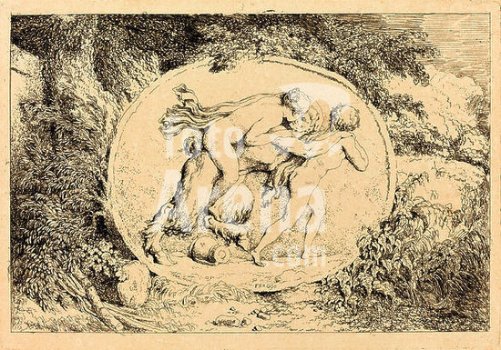 alb3705651 Nymph Astride a Satyr (Jeune fille a califourchon sur un satyre). Dated: 1763. Medium: etching. Museum: National Gallery of Art, Washington DC. Author: JEAN-HONORE FRAGONARD.