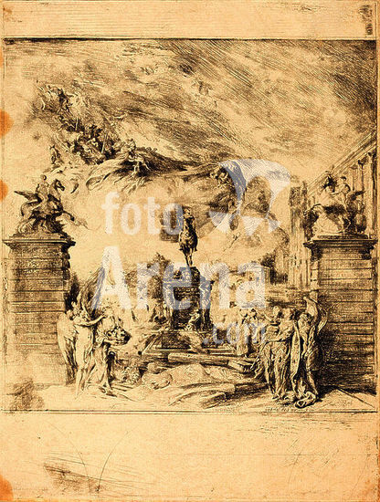 alb3706955 Allegorie sur l'Erection de la Statue de Louis XV (Allegory on the Establishment of a. Dated: c. 1763. Dimensions: image: 23.5 x 23.2 cm (9 1/4 x 9 1/8 in.) plate: 31.6 x 24 cm (12 7/16 x 9 7/16 in.). Medium: etching with traces of roulette and engraving. Museum: National Gallery of Art, Washington DC. Author: Gabriel Jacques de Saint-Aubin.