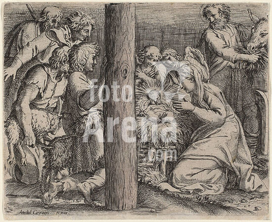 alb3710638 The Adoration of the Shepherds. Dated: 1606. Dimensions: plate: 10.8 x 132 cm (4 1/4 x 51 15/16 in.) sheet: 11 x 13.2 cm (4 5/16 x 5 3/16 in.). Medium: etching and engraving on laid paper. Museum: National Gallery of Art, Washington DC. Author: Annibale Carracci.