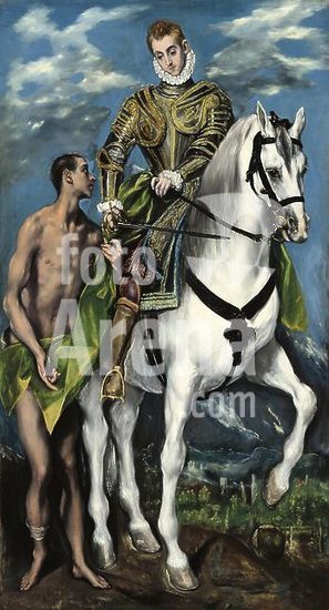 alb3712300 Saint Martin and the Beggar. Dated: 1597/1599. Dimensions: overall: 193.5 x 103 cm (76 3/16 x 40 9/16 in.) framed: 215.3 x 135.9 x 12.7 cm (84 3/4 x 53 1/2 x 5 in.). Medium: oil on canvas. Museum: National Gallery of Art, Washington DC. Author: El Greco (Domenikos Theotokopoulos).