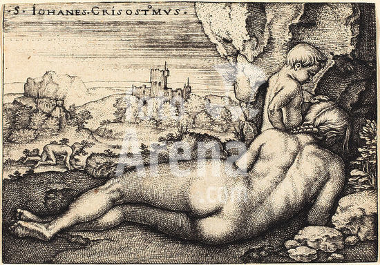 alb3713308 The Penance of Saint John Chrysostom. Dated: c. 1541/1545. Dimensions: sheet (trimmed to plate mark): 5.3 x 7.7 cm (2 1/16 x 3 1/16 in.). Medium: engraving. Museum: National Gallery of Art, Washington DC. Author: Sebald Beham.