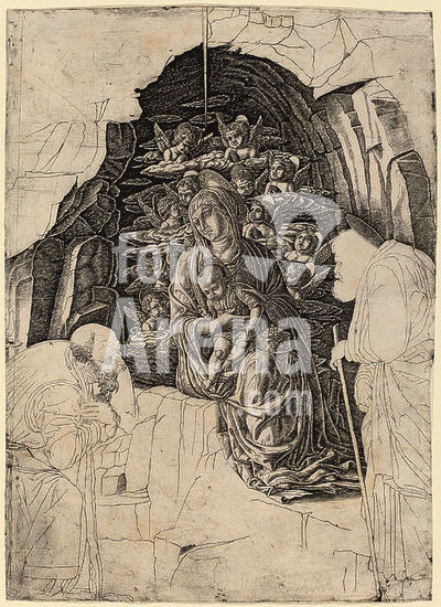 alb3717176 The Adoration of the Magi (Virgin in the Grotto). Dated: c. 1475/1480. Dimensions: sheet (trimmed to plate mark): 39 x 28.2 cm (15 3/8 x 11 1/8 in.). Medium: engraving. Museum: National Gallery of Art, Washington DC. Author: Workshop of Andrea Mantegna.