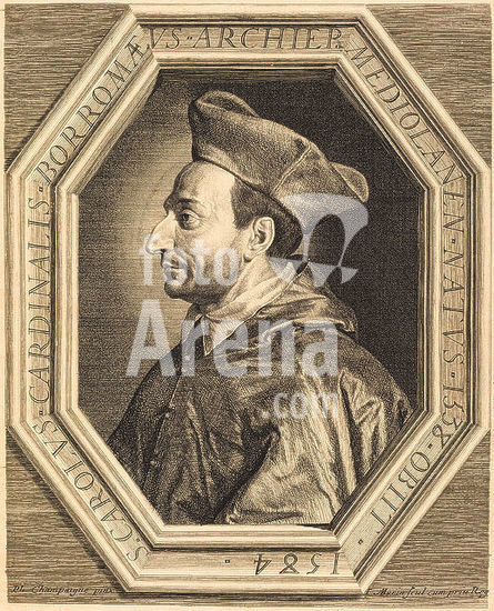 alb3722052 Saint Charles, Cardinal Borromeo. Dimensions: plate: 30.7 x 25.3 cm (12 1/16 x 9 15/16 in.) sheet: 32.5 x 26 cm (12 13/16 x 10 1/4 in.). Medium: etching, engraving, and stippling on laid paper. Museum: National Gallery of Art, Washington DC. Author: Jean Morin after Philippe de Champaigne.