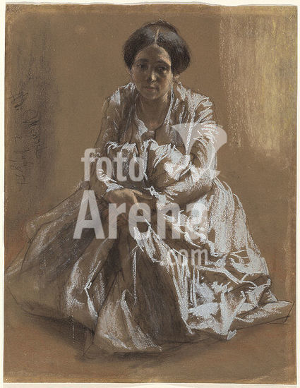 alb3722464 The Artist's Sister Emilie. Dated: 1851. Dimensions: sheet: 31 x 24 cm (12 3/16 x 9 7/16 in.). Medium: black chalk and stumping with pastel on brown wove paper, corners pricked. Museum: National Gallery of Art, Washington DC. Author: ADOLPH MENZEL.