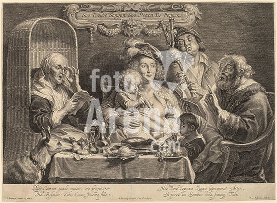 alb3729297 The Family Concert (As the old sing, so the young twitter). Dimensions: sheet (trimmed to plate mark): 32.2 x 44.1 cm (12 11/16 x 17 3/8 in.). Medium: engraving. Museum: National Gallery of Art, Washington DC. Author: Schelte Adams Bolswert after Jacob Jordaens.