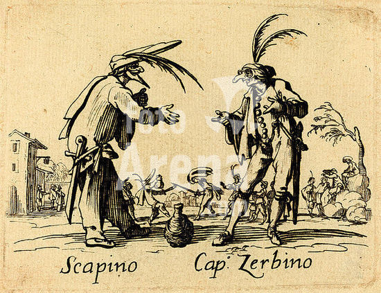 alb3730515 Scapino and Cap. Zerbino. Medium: etching. Museum: National Gallery of Art, Washington DC. Author: after Jacques Callot.