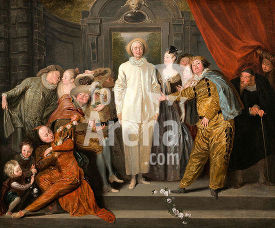 alb3731064 The Italian Comedians. Dated: probably 1720. Dimensions: overall: 63.8 x 76.2 cm (25 1/8 x 30 in.) framed: 94.3 x 106.4 cm (37 1/8 x 41 7/8 in.). Medium: oil on canvas. Museum: National Gallery of Art, Washington DC. Author: ANTOINE WATTEAU.