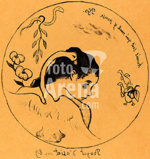 alb3734188 Design for a China Plate (Projet d'assiette). Dated: 1889. Medium: lithograph (zinc) in black on imitation japan paper. Museum: National Gallery of Art, Washington DC. Author: PAUL GAUGUIN.