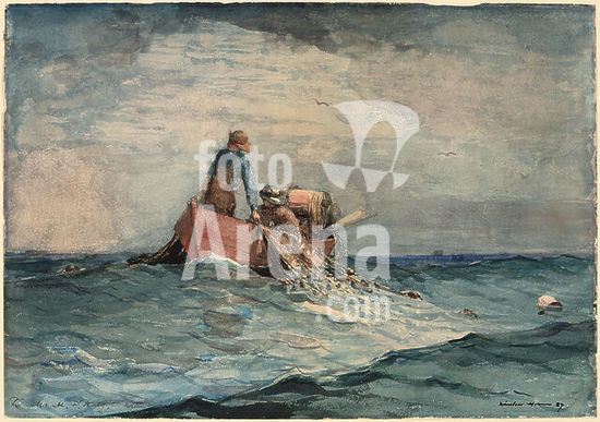 alb3736224 Hauling in the Nets. Dated: 1887. Dimensions: sheet: 35.6 × 50.8 cm (14 × 20 in.). Medium: watercolor over graphite on wove paper. Museum: National Gallery of Art, Washington DC. Author: Winslow Homer.