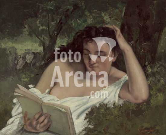 alb3742391 A Young Woman Reading. Dated: c. 1866/1868. Dimensions: overall: 60 x 72.9 cm (23 5/8 x 28 11/16 in.) framed: 81.3 x 94.6 cm (32 x 37 1/4 in.). Medium: oil on canvas. Museum: National Gallery of Art, Washington DC. Author: GUSTAVE COURBET.