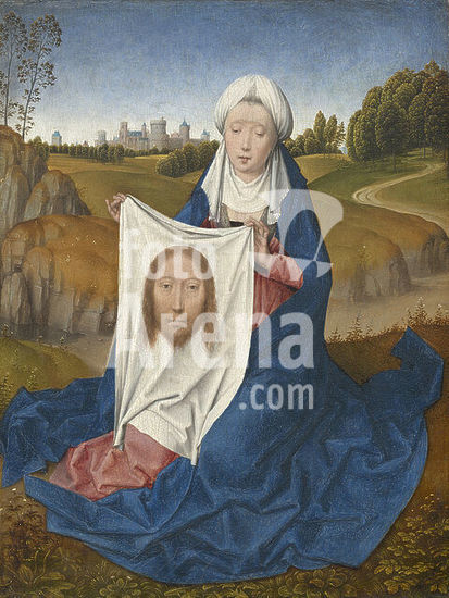 alb3744576 Saint Veronica [obverse]. Dated: c. 1470/1475. Dimensions: painted surface: 30.3 x 22.8 cm (11 15/16 x 9 in.) overall (panel): 31.2 x 24.4 cm (12 5/16 x 9 5/8 in.) framed: 38.9 x 31.8 x 3.8 cm (15 5/16 x 12 1/2 x 1 1/2 in.). Medium: oil on panel. Museum: National Gallery of Art, Washington DC. Author: Hans Memling.