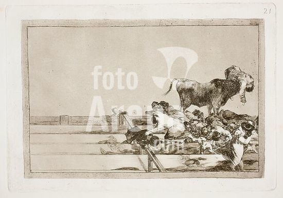 alb3787378 Francisco de Goya y Lucientes / 'Death of the Alcalde of Torrejón, on the Stone seats in the bull-ring at Madrid'. 1814 - 1816. Wash, Etching, Aquatint, Burnisher, Burin, Drypoint on white laid paper. Museum: Museo del Prado, Madrid, España.