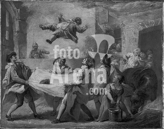 alb4137217 Sancho Panza Being Tossed in a Blanket. Pierre Charles Trémolières; French, 1703-1739. Date: 1723-1724. Dimensions: 11 3/8 × 14 1/2 in. (28.9 × 36.8 cm). Oil on canvas. Origin: France. Museum: The Chicago Art Institute, USA.