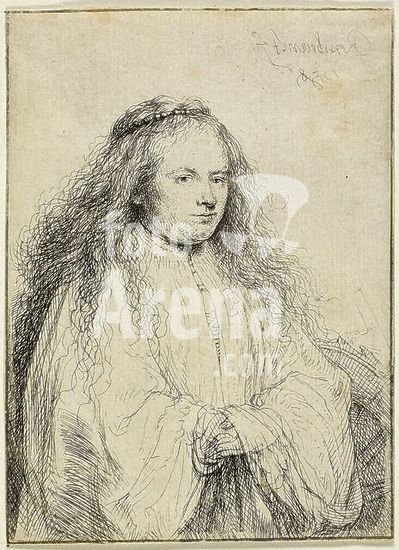 alb4137806 St Catherine (The Little Jewish Bride). Rembrandt van Rijn; Dutch, 1606-1669. Date: 1638. Dimensions: 108 x 78 mm (sheet trimmed within plate mark). Etching and drypoint on paper. Origin: Holland. Museum: The Chicago Art Institute, USA. Author: REMBRANDT HARMENSZOON VAN RIJN.
