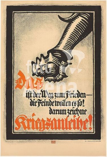 alb4169960 Poster. Lucian Bernhard; American, born Austria, 1883-1972. Date: 1917. Dimensions: 640 x 465 mm (image); 698 x 475 mm (sheet). Color lithograph in black and red on buff wove paper. Origin: United States. Museum: The Chicago Art Institute, USA.