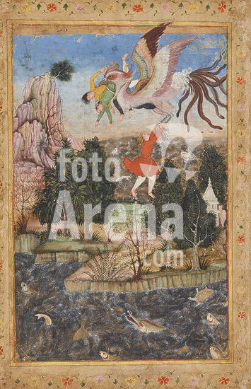 alb9540025 Indian miniature painter Basawans , The Flight of the Simurgh, miniature, 38.6 x 25.1 cm. ca. 1590. Museum: Aga Khan Museum, the, Toronto, CANADA.