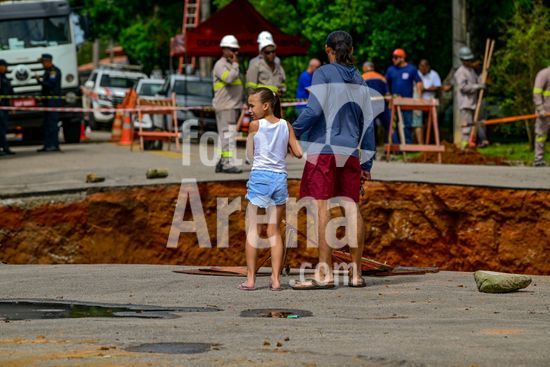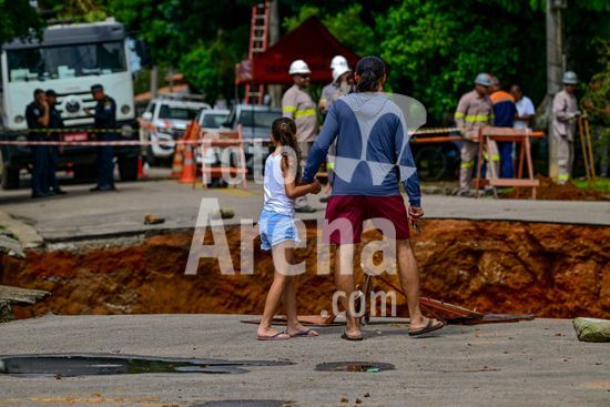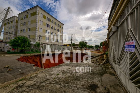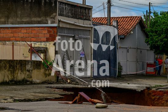 2880755 Segunda cratera na Rua Felisbina de Souza Machado Jardim Imperial no inicio do ano houve um afundamamentyo onde um caminhão foi engolido pelo buraco que se abriu mais e permanece aberto ontem a tarde uma nova cratera se abriu e tres outros pontos de afundamento são vistos na rua . 34 familias do prwedio tiveram que evacuar do local e diversas casa e comercio na rua estão interditados . Falta agua e energia eletrica em toda a região do entorno das crateras .