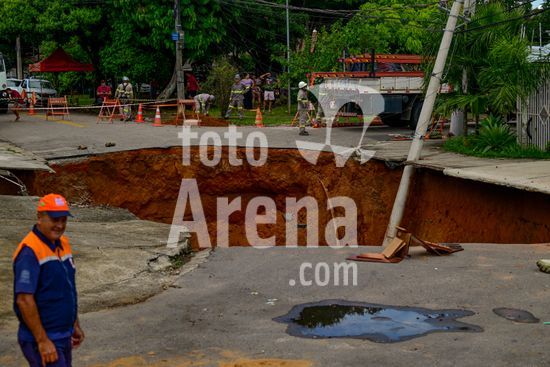 2880750 Segunda cratera na Rua Felisbina de Souza Machado Jardim Imperial no inicio do ano houve um afundamamentyo onde um caminhão foi engolido pelo buraco que se abriu mais e permanece aberto ontem a tarde uma nova cratera se abriu e tres outros pontos de afundamento são vistos na rua . 34 familias do prwedio tiveram que evacuar do local e diversas casa e comercio na rua estão interditados . Falta agua e energia eletrica em toda a região do entorno das crateras .