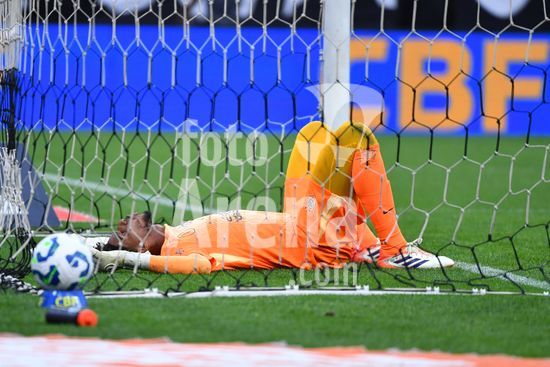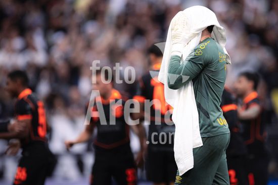 2834831 Tiago Volpi lamenta gol sofrido durante a partida entre Corinthians x Grêmio realizada na Neo Química Arena em São Paulo, SP. O jogo é válido pela 31ª rodada do Brasileirão 2025.