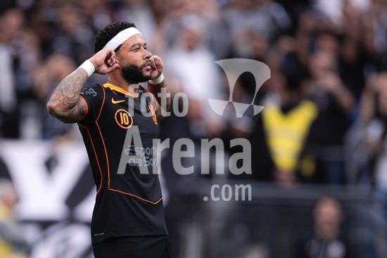 2834801 Memphis do Corinthians comemora o gol durante partida entre Corinthians x Grêmio, válida pela trigésima primeira roda do Campeonato Brasileiro de Futebol 2025, neste domingo (2), na Neo Química Arena, SP.