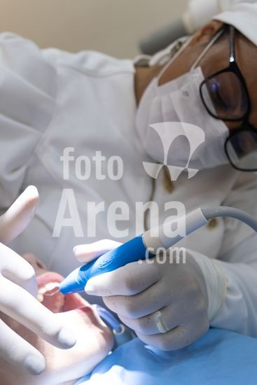 2769541 A doutora Jerusa Tavares faz o atendimento dental na menina Daniela Rodrigue, 11 anos, na clínica Via Odonto em Joinville-SC.