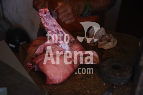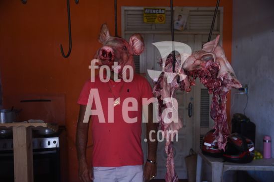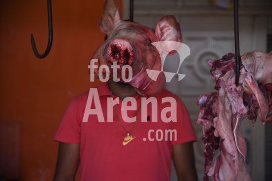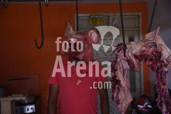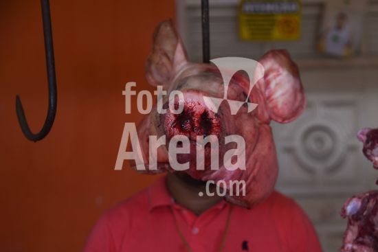 2777665 Cabeça de Porco em açougue na cidade de Jaguaruana no Ceará.