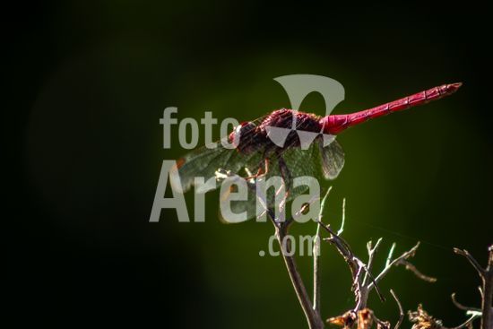 2789814 Uma Libélula-cor-de-sangue (Sympetrum sanguineum) pousada delicadamente sobre um galho seco, em meio a um cenário natural exuberante. Esta imagem captura a beleza da fauna brasileira e a interação entre os insetos e o meio ambiente. Ideal artigos sobre biodiversidade, ecologia, ou para ensinar sobre a vida dos insetos (especialmente os odonatos) e a importância da conservação ambiental. A coloração marcante da libélula a torna um exemplar notável da rica diversidade da vida selvagem no Brasil.