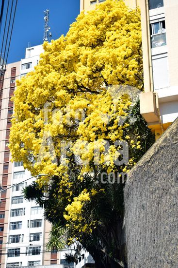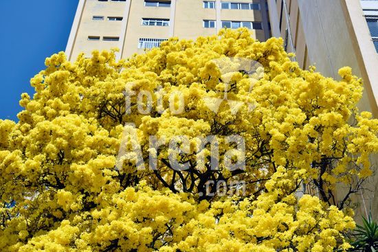 2804168 Árvore Ipe Amarelo na região da Pompéia, zona oeste da capital. Flor. Florada. Às vésperas da primavera, Ipês são vistos pela cidade. Ipê-amarelo (Handroanthus Albus). Natureza. Na foto, árvore florida amarela.