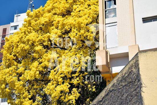 2804170 Árvore Ipe Amarelo na região da Pompéia, zona oeste da capital. Flor. Florada. Às vésperas da primavera, Ipês são vistos pela cidade. Ipê-amarelo (Handroanthus Albus). Natureza. Na foto, árvore florida amarela.