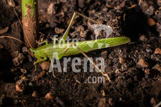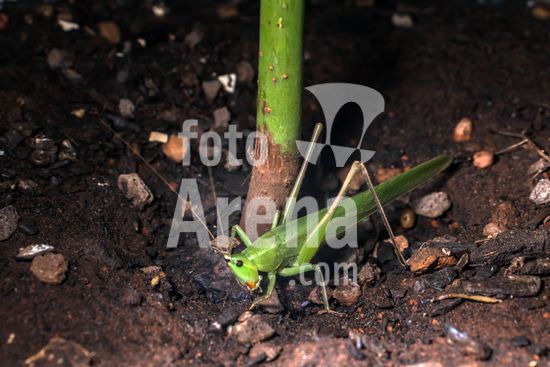 2835329 Um gafanhoto-folha, também conhecido como esperança, é visto em um registro fotográfico detalhado sobre o solo. Este inseto pertence à ordem Orthoptera e é conhecido por sua impressionante capacidade de camuflagem, com seu corpo verde e formato de asa que imitam perfeitamente uma folha, protegendo-o de predadores. Com suas longas antenas, ele explora o ambiente em busca de alimento, que consiste principalmente em plantas. Gafanhotos desempenham um papel vital no ecossistema, servindo como fonte de alimento para uma variedade de animais, como pássaros, répteis e mamíferos. Esta imagem é um excelente recurso para ilustrar conceitos de biologia, como mimetismo, adaptação e a diversidade da fauna brasileira em materiais didáticos e reportagens sobre o meio ambiente.