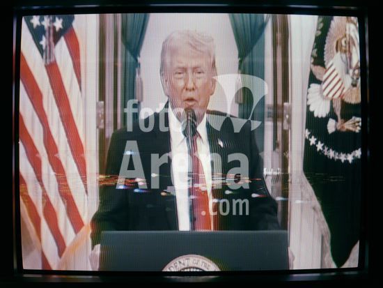ny020426160511 A monitor displays President Donald Trump as he delivers a message on the war in Iran in Washington, April 1, 2026. In a functioning American democracy, the president would deliver an Oval Office address at the start of a new military conflict. Donald Trump, however, decided to wait until a month into his war with Iran to give a speech about it to a skeptical public. (Jason Hendardy/The New York Times/Fotoarena)