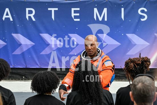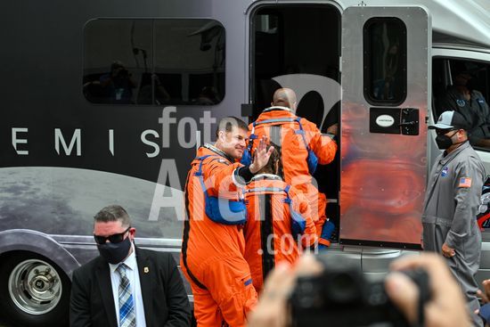 ny010426182012 Victor Glover, the mission pilot, speaks with family members before he and the rest of the Artemis II crew board a van for the drive to the launchpad at the Kennedy Space Center in Florida on Wednesday, April 1, 2026. The crew of four Ñ three Americans and one Canadian Ñ are scheduled to launch Wednesday evening on the first crewed journey to the moon since 1972. (Kenny Holston/The New York Times/Fotoarena)