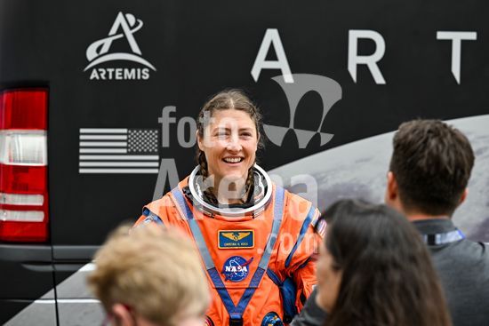 ny010426181812 Christina Koch, mission specialist, speaks with family members before she and the rest of the Artemis II crew board a van for the drive to the launchpad at the Kennedy Space Center in Florida on Wednesday, April 1, 2026. The crew of four Ñ three Americans and one Canadian Ñ are scheduled to launch Wednesday evening on the first crewed journey to the moon since 1972. (Kenny Holston/The New York Times/Fotoarena)