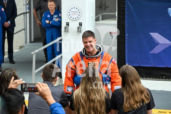 ny010426181912 Canadian Space Agency astronaut Jeremy Hansen speaks with family members before he and the rest of the Artemis II crew board a van for the drive to the launchpad at the Kennedy Space Center in Florida on Wednesday, April 1, 2026. The crew of four Ñ three Americans and one Canadian Ñ are scheduled to launch Wednesday evening on the first crewed journey to the moon since 1972. (Kenny Holston/The New York Times/Fotoarena)