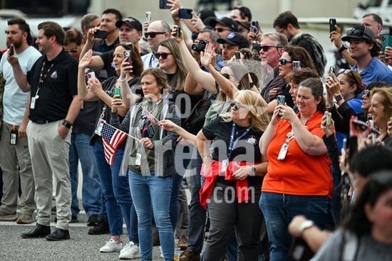 ny020426101816 Relatives of the astronauts and well-wishers wave and take photos at the Kennedy Space Center in Florida as the crew members of the Artemis II mission board a van for the drive to the launchpad on Wednesday, April 1, 2026. The crew of four Ñ three Americans and one Canadian Ñ reached space on Wednesday on the first crewed journey to the moon since 1972. (Kenny Holston/The New York Times/Fotoarena)