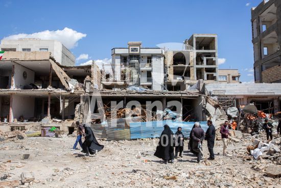 ny040426121012 People gather by residential buildings after a neighborhood was targeted by airstrikes in Karaj, Iran, on Friday, April 3, 2026. From the moment that President Donald Trump launched the war with Iran, he has labored to persuade anxious Americans that it will soon end. But he has not been able explain how it could, short of the military battering IranÕs leaders into agreeing to concessions. (Arash Khamooshi/The New York Times/Fotoarena)