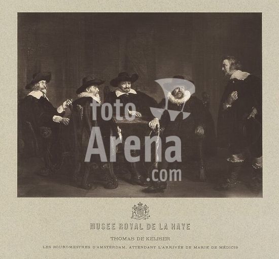 alb15515519 Braun et Cie, Adolphe, Photographic reproduction of a painting by Thomas de Keyser, 'The mayors of Amsterdam learn of the arrival of Maria de' Medici', photograph, photo, photos, height 205 mm, width 272 mm, Publication (Event), Publication, publisher, 1886 - 1886, fourth quarter 19th century, paper, photographic paper, photo paper, cardboard, carbon print.