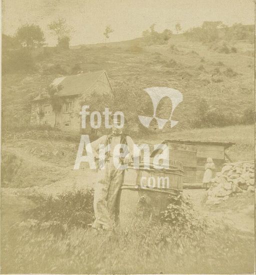 alb15519271 Germany, Braun, Adolphe, landscape with man leaning on a barrel and woman in the background, photograph, photo, stereograph, stereo photo, photos, height 75 mm, width 150 mm, French, German, 1812 - 1877, photographer, 1850 - 1880, third quarter 19th century, fourth quarter 19th century, cardboard, photography.