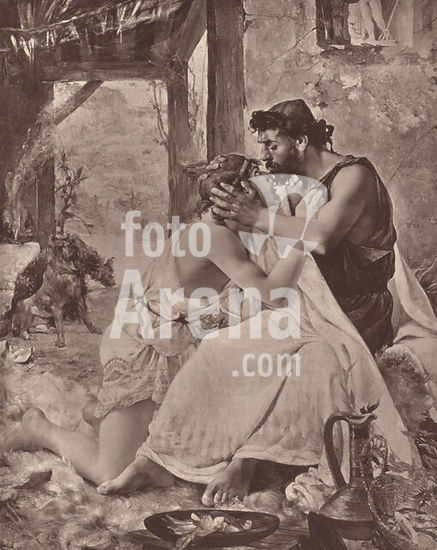 alb15865732 Photo reproduction of the painting 'Télémaque retrouvant Ulysse' by Georges Truffaut, Télémaque retrouvant Ulysse (title on object), Adolphe Braun & Cie., Goupil & Cie., after painting by: Georges Truffaut, c. 1878 - in or before 1883, paper, height 244 mm × width 192 mm, photomechanical print.