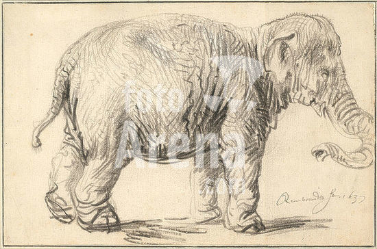 alb3905205 An Elephant, 1637. Date/Period: 1637. Drawing. Black chalk on paper. Author: Rembrandt Harmensz van Rijn.