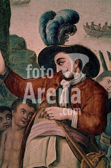 orz002819 CONQUISTA DE MEXICO - DETALLE - JUAN DE GRIJALBA - PINTADO EN COBRE A FINALES DEL SIGLO XVIII. Author: ANONYMOUS. Location: MUSEO DE AMERICA-COLECCION. MADRID. SPAIN.